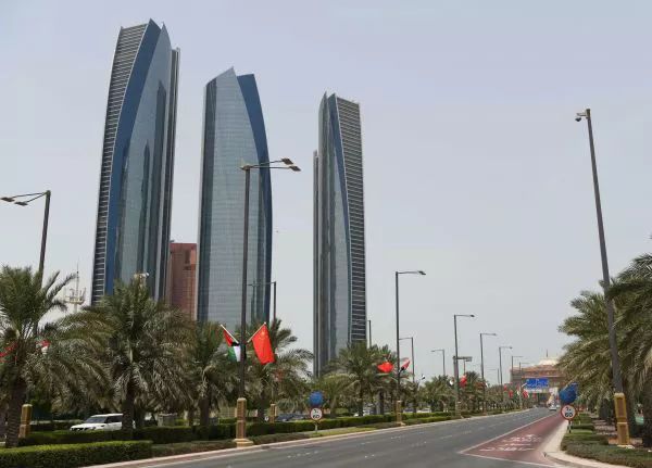 7月18日,阿聯酋首都阿布扎比的街道兩邊懸掛著中阿兩國國旗。(鄔惠我攝)