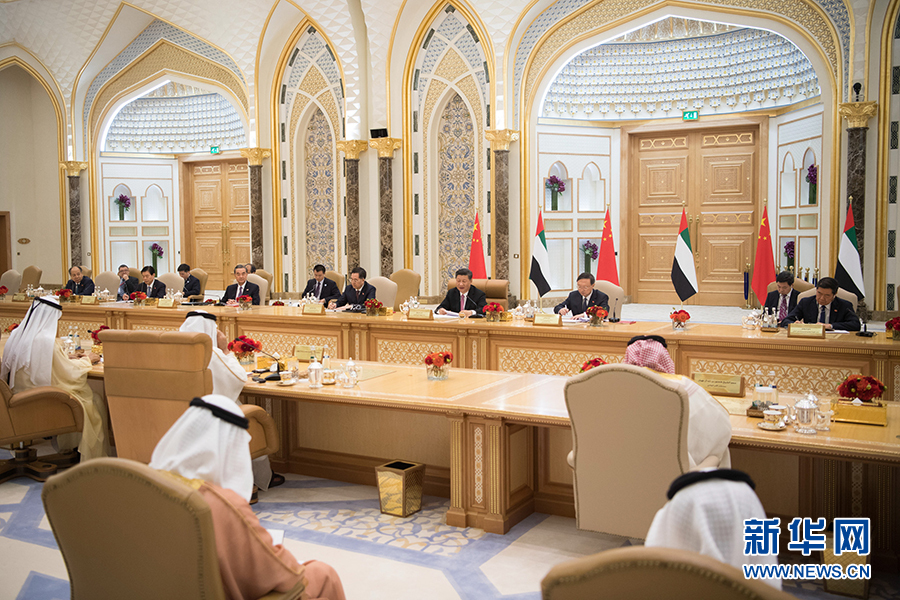 習近平強調,雙方要把中阿全面戰略伙伴關系落到實處,夯實政治互信,繼續照顧彼此核心利益和重大關切,支持對方走適合本國國情的發展道路。中阿是共建“一帶一路”的天然合作伙伴,中方視阿聯酋為“一帶一路”建設重要支點國家,贊賞王儲殿下提出“重振絲綢之路”設想。雙方要加強發展戰略對接和產業政策溝通,規劃好、運營好中阿共建“一帶一路”旗艦項目,促進中東海灣地區經濟發展。中方愿同阿方打造全方位、立體化能源合作格局,深化投資和金融合作,拓展創新合作。要加強安全合作,堅決反對一切形式的恐怖主義。要堅持民心相通,密切人文交流,加強不同宗教和不同文化包容互鑒。中方支持實施好王儲殿下發起的“青年大使”訪華項目,贊賞副總統兼總理殿下推出的“擁抱中國”計劃,愿同阿方分享經驗,共同將迪拜世博會辦成一屆令人矚目的盛會。