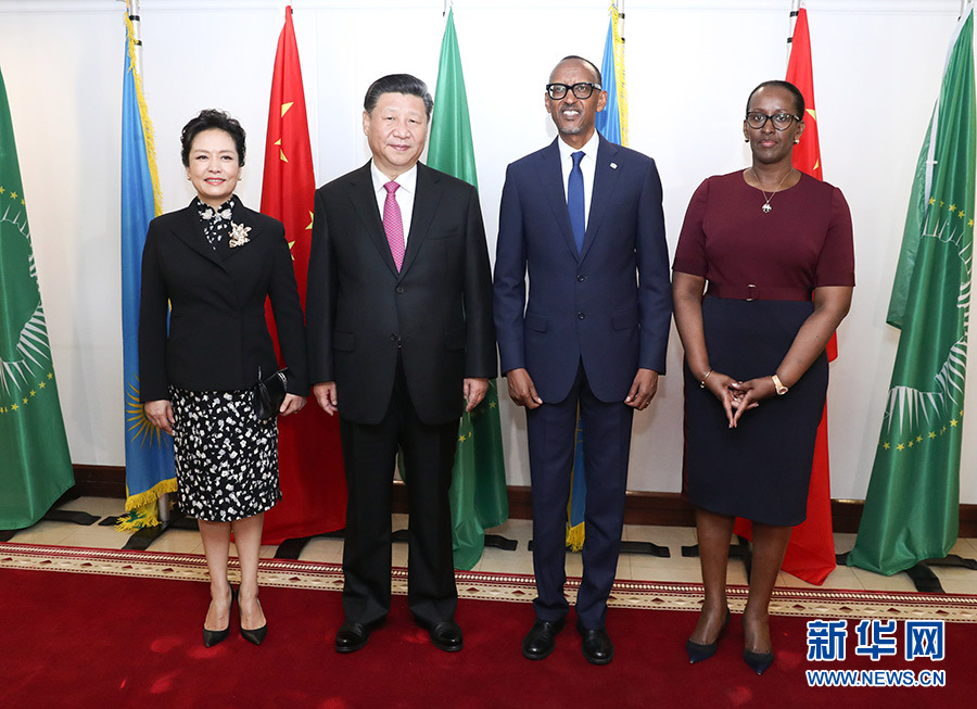 7月23日,國家主席習近平在基加利同盧旺達總統(tǒng)卡加梅舉行會談。這是會談前,習近平和夫人彭麗媛同卡加梅和夫人珍妮特合影。 新華社記者 龐興雷 攝