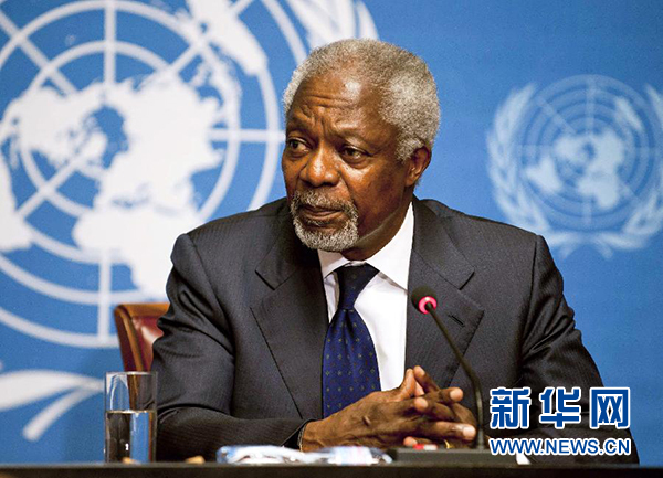 這是2012年6月30日,時任聯(lián)合國-阿盟敘利亞危機聯(lián)合特使安南在瑞士日內(nèi)瓦出席新聞發(fā)布會。 新華社記者謝海寧攝