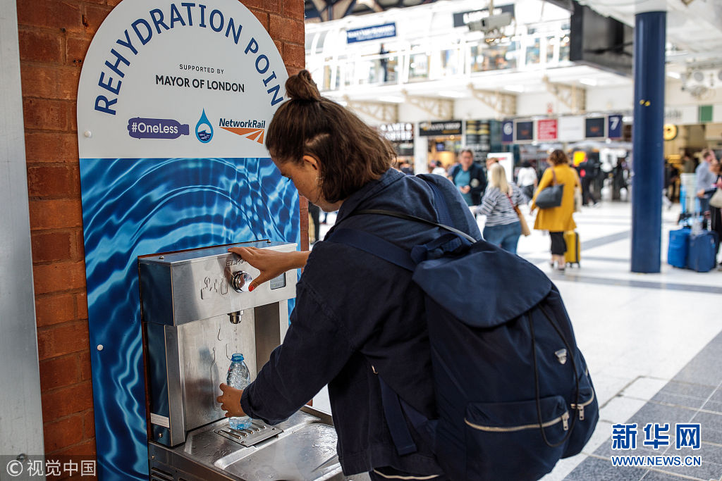 當(dāng)?shù)貢r(shí)間2018年8月28日,英國(guó)倫敦,民眾在公共飲水機(jī)旁飲水。倫敦市長(zhǎng)近日引進(jìn)了20個(gè)新的公共飲水機(jī),鼓勵(lì)人們自帶杯子取水喝,從而減少塑料垃圾。 (圖片來(lái)源:視覺(jué)中國(guó))