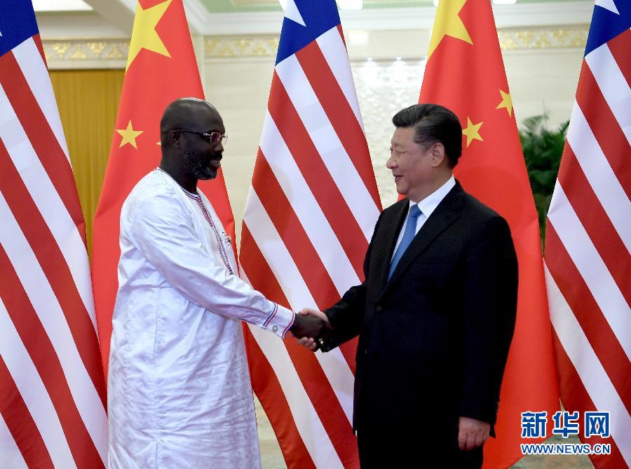 9月1日,國家主席習近平在北京人民大會堂會見利比里亞總統維阿。新華社記者 張領 攝