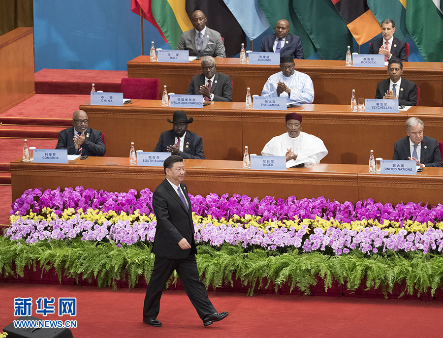 初秋的北京,天安門廣場和長安街兩旁鮮花盛開,中非合作論壇成員國國旗、非洲聯盟會旗和印有中非合作論壇會徽的旗幟迎風飄揚。人民大會堂北門外,禮兵分列紅地毯兩側。16時許,出席論壇峰會的外方領導人陸續抵達。習近平在北大廳熱情迎接,同他們一一親切握手,互致問候。隨后,中外領導人集體合影。