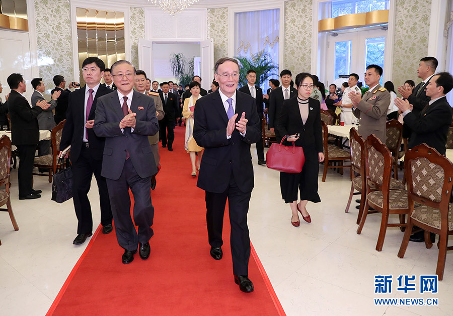 王岐山向朝鮮同志70年來在社會主義革命和建設事業中取得的豐碩成果表示祝賀。他說,中朝是山水相連的友好近鄰。今年以來,習近平總書記和金正恩委員長舉行了3次歷史性會晤,為中朝關系長遠發展提供了指南。不論國際和地區形勢如何變化,中國黨和政府致力于鞏固發展中朝關系的堅定立場不會變,中國人民對朝鮮人民的友好情誼不會變,中國對社會主義朝鮮的支持不會變。中方愿同朝方一道,切實落實好兩國最高領導人達成的重要共識,推動兩國關系不斷取得新的更大發展。