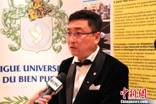 9月21日晚,中國工筆畫家崔景哲在巴黎榮獲全球公益聯盟文學(藝術)金質勛章,也是此次頒獎典禮所有獲獎者中唯一一位中國人。圖為崔景哲接受媒體采訪。李洋 攝