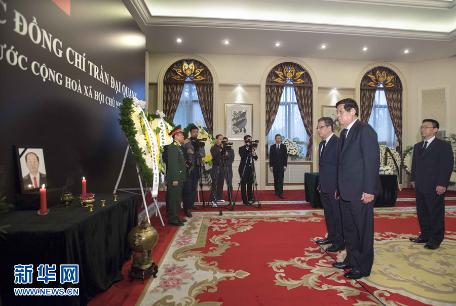 栗戰(zhàn)書敬獻花圈并在吊唁簿上題詞,對陳大光主席逝世表示深切哀悼。栗戰(zhàn)書表示,中方高度評價陳大光主席為發(fā)展中越兩黨兩國關系所作重要貢獻,習近平總書記、國家主席專門向阮富仲總書記發(fā)去唁電,正在訪越的中共中央政治局常委、中央紀委書記趙樂際出席了在河內(nèi)的悼念活動。中越互為友好鄰邦和戰(zhàn)略伙伴,中方愿同越方一道,弘揚傳統(tǒng)友誼、增進政治互信、深化互利合作,推動中越兩黨兩國關系不斷發(fā)展。