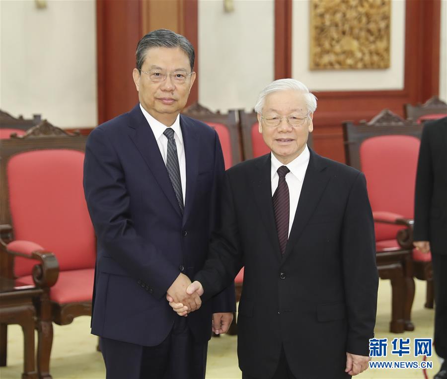 會(huì)見阮富仲時(shí),趙樂際首先轉(zhuǎn)達(dá)了習(xí)近平總書記的親切問候。趙樂際說,在兩黨總書記親自引領(lǐng)下,兩黨兩國關(guān)系持續(xù)健康穩(wěn)定發(fā)展。我此訪就是落實(shí)兩黨總書記達(dá)成的重要共識(shí),按照“十六字”方針和“四好”精神,加強(qiáng)戰(zhàn)略溝通,密切高層交往,促進(jìn)務(wù)實(shí)合作,推動(dòng)中越全面戰(zhàn)略合作伙伴關(guān)系邁上新臺(tái)階。阮富仲請(qǐng)趙樂際轉(zhuǎn)達(dá)對(duì)習(xí)近平總書記的良好祝愿,誠摯感謝習(xí)近平總書記委托趙樂際同志代表中共中央吊唁越南國家主席陳大光。阮富仲表示,當(dāng)前越中關(guān)系處于歷史最好時(shí)期,中國的發(fā)展成就不僅造福中國人民,也對(duì)越南國家發(fā)展和越中關(guān)系發(fā)展發(fā)揮重要促進(jìn)作用。越方愿加強(qiáng)兩黨理論創(chuàng)新和實(shí)踐經(jīng)驗(yàn)交流,全面有效落實(shí)高層共識(shí),深化各領(lǐng)域合作,不斷豐富越中傳統(tǒng)友好合作關(guān)系的時(shí)代內(nèi)涵。