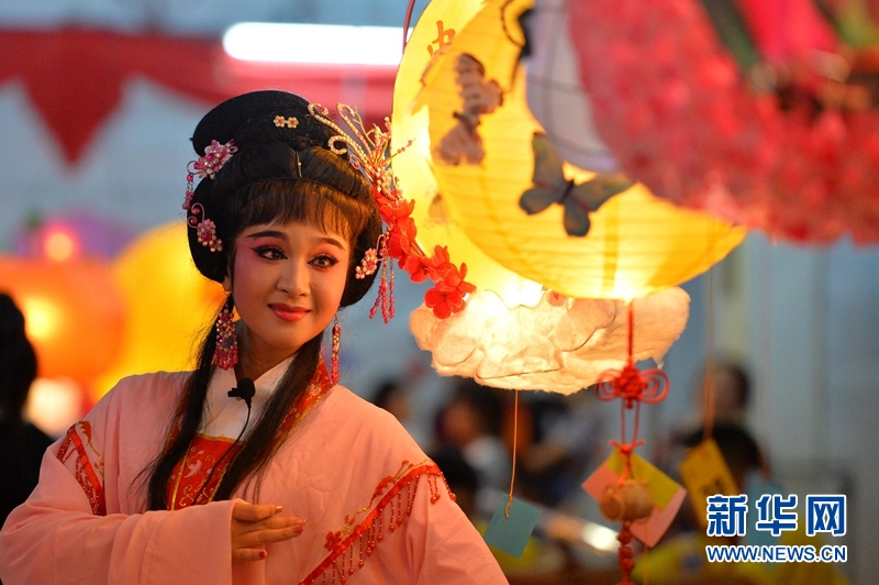 9月24日晚,文萊華人社團(tuán)在斯里巴加灣市中心舉辦慶中秋燈會和傳統(tǒng)戲曲表演,吸引民眾駐足觀賞。圖為閩劇團(tuán)演員在燈會上表演傳統(tǒng)戲曲。杰弗里·黃攝