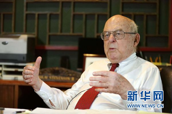 7月16日,美國前聯邦參議員斯蒂文森三世在芝加哥的家中接受新華社記者專訪。新華社記者汪平攝