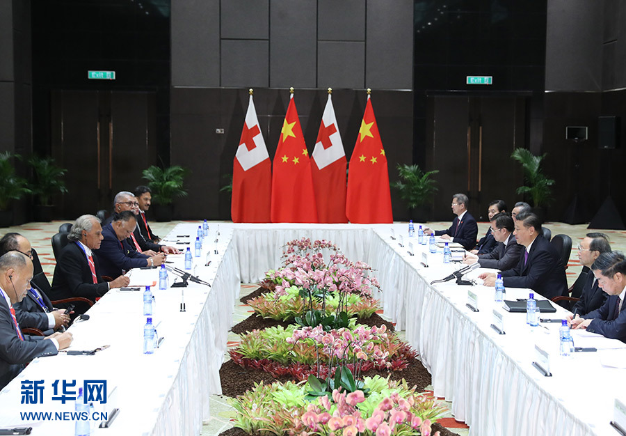 在會見湯加首相波希瓦時,習近平指出,今年是中湯建交20周年。20年來,兩國互利合作取得了豐碩成果。中方贊賞湯方堅定奉行一個中國政策,歡迎湯方積極參與共建“一帶一路”。希望雙方深挖合作潛力,擴大貿易、投資、基礎設施建設等領域合作,拓展人文、地方交流。