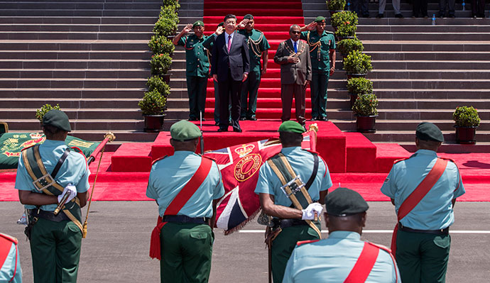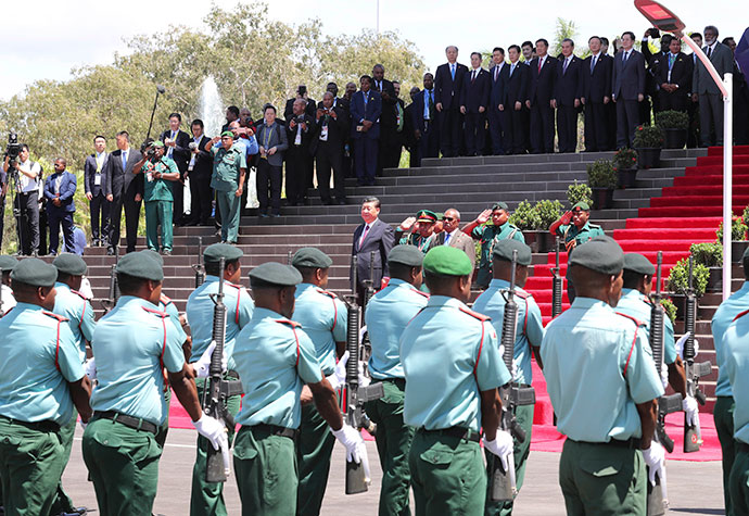 11月16日,國家主席習近平在莫爾茲比港會見巴布亞新幾內亞總督達達埃。會見開始前,達達埃在議會大廈前廣場為習近平舉行隆重歡迎儀式。新華社記者 費茂華 攝