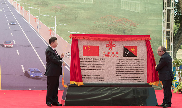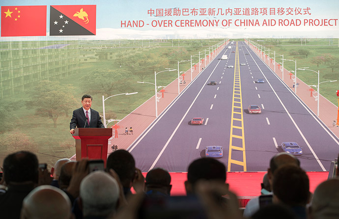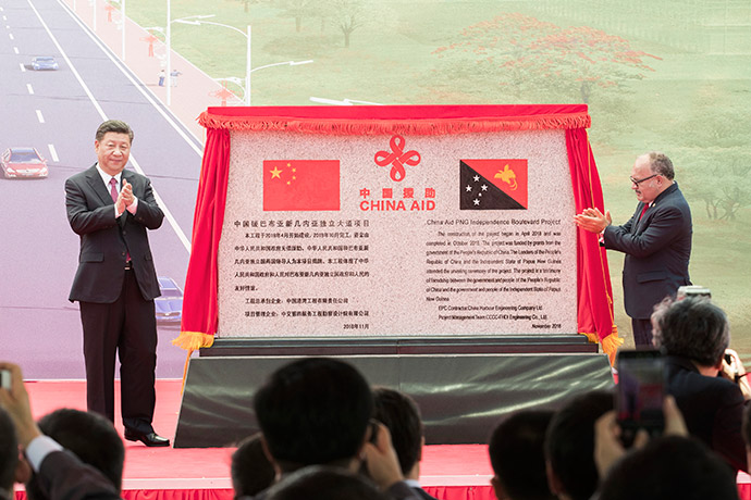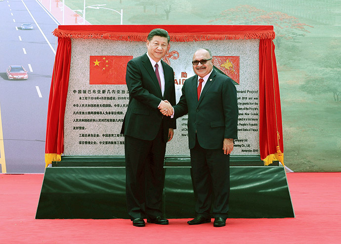 11月16日,國家主席習近平在莫爾茲比港和巴布亞新幾內亞總理奧尼爾共同出席中國援建的獨立大道移交啟用儀式。新華社記者 費茂華 攝