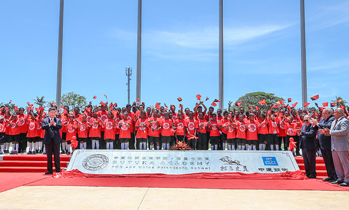 11月16日,國家主席習近平在莫爾茲比港和巴布亞新幾內亞總理奧尼爾共同出席中國援建的布圖卡學園啟用儀式。 新華社記者 謝環馳 攝