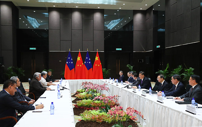 11月16日,國家主席習近平在莫爾茲比港分別會見建交太平洋島國領導人。這是習近平會見薩摩亞總理圖伊拉埃帕。新華社記者 謝環馳 攝