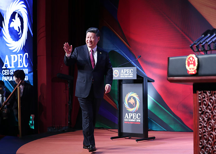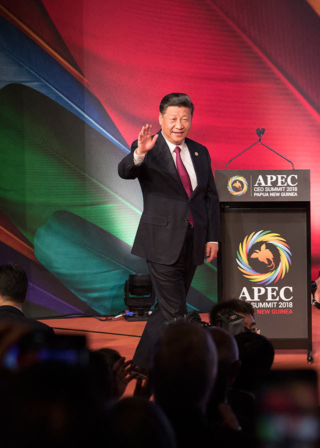 11月17日,國(guó)家主席習(xí)近平應(yīng)邀出席在巴布亞新幾內(nèi)亞莫爾茲比港舉行的亞太經(jīng)合組織工商領(lǐng)導(dǎo)人峰會(huì)并發(fā)表題為《同舟共濟(jì)創(chuàng)造美好未來(lái)》的主旨演講。新華社記者 鞠鵬 攝