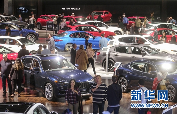 11月30日,在美國洛杉磯,人們參觀車展。 新華社發(fā)(趙漢榮攝)