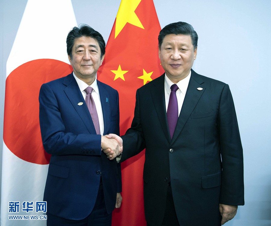 ——會見日本首相安倍晉三,指出雙方要建設性地把握好中日關系發展方向,在中日四個政治文件原則基礎上,共同開辟兩國關系新前景。