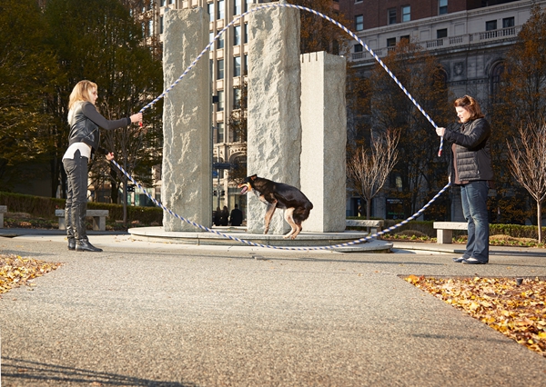 小狗Geronimo也是被Samantha救助并領養的狗。Geronimo是一只邊境牧羊犬和卡爾比犬的混種母犬,性格活潑,是“1分鐘一只狗完成最多的交互跳繩”的世界紀錄保持者。經過六個星期的訓練,Samantha發現Geronimo變得難以配合訓練,于是她想出增加一根跳繩的方法。這使她很快就發現Geronimo簡直是一個交互跳繩天才!