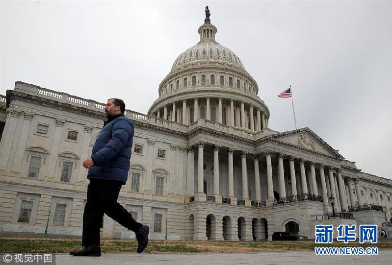 當?shù)貢r間2019年1月7日,美國華盛頓,美國國會。因美國國會兩黨仍無法就臨時撥款法案和美墨邊界墻問題達成一致,截至7日,美國部分聯(lián)邦政府機構的停擺狀態(tài)已進入第三周。有白宮高級官員6日透露,由于談判持續(xù)僵持,美國總統(tǒng)特朗普現(xiàn)在已經(jīng)傾向于宣布國家進入緊急狀態(tài)。(圖片來源:視覺中國)