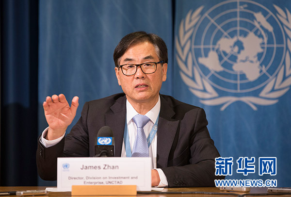 1月18日,在瑞士日內瓦,聯合國貿易和發展會議(貿發會議)投資和企業司司長詹曉寧出席報告發布會。 新華社記者 徐金泉 攝