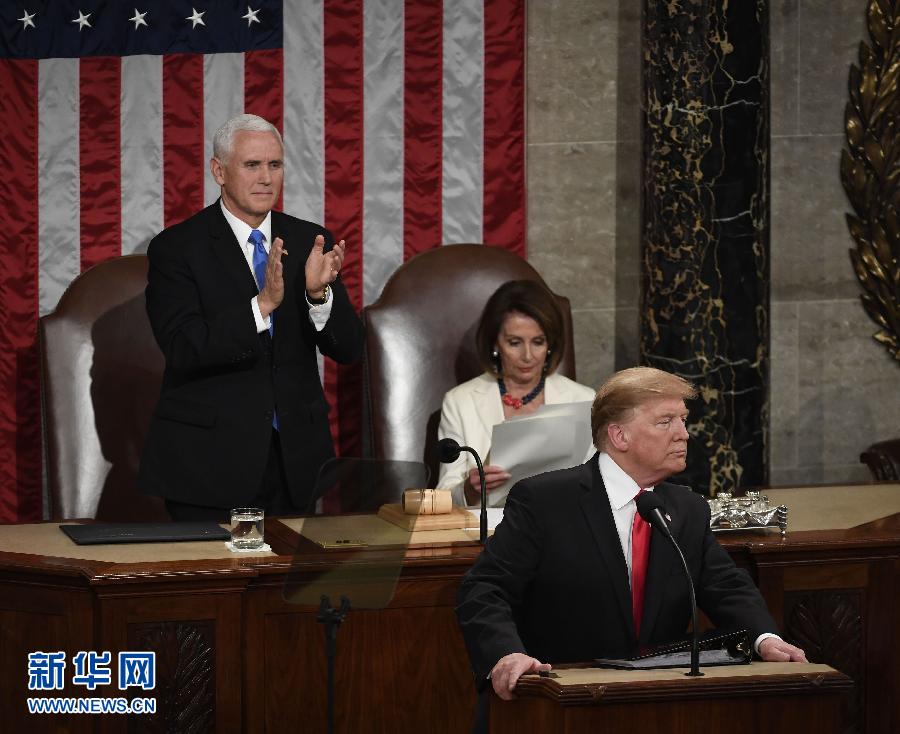 ??? 2月5日,在美國首都華盛頓,美國總統(tǒng)特朗普(前)在國會發(fā)表國情咨文演講。 新華社記者劉杰攝