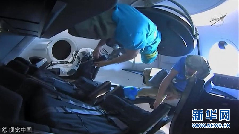 2019年3月3日,美國宇航局在任務現場直播視頻宣布,SpaceX“龍”飛船成功與國際空間站進行對接。3月2日,載人“龍”飛船搭乘“獵鷹9”火箭在美國佛羅里達州肯尼迪航天中心39A發射臺升空。飛船里有個假人模型,用來記錄真實宇航員承受的各項數據。(視頻截圖)(圖片來源:視覺中國)