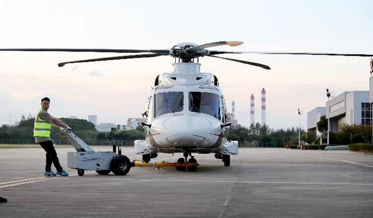作為首屆中國國際進口博覽會上的展品,意大利萊奧納多直升機公司AW189直升機入駐智能及高端裝備展區。(新華社記者方喆攝)
