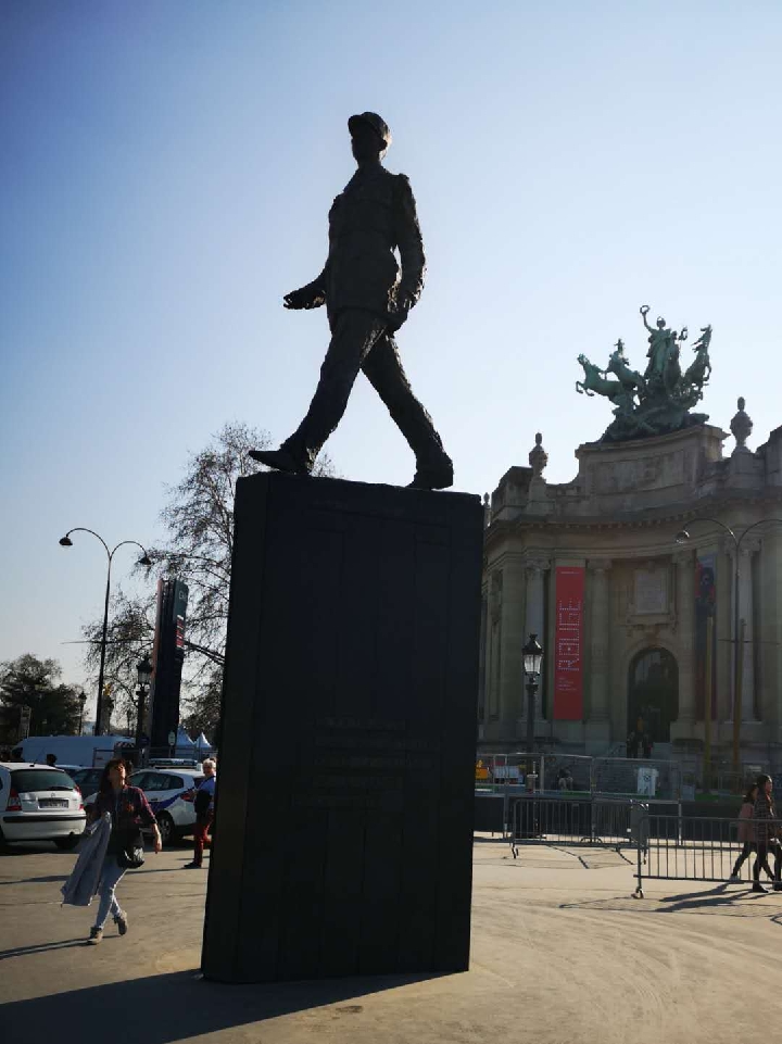 如果說埃菲爾鐵塔是巴黎浪漫之都的代表,那么凱旋門就是見證法蘭西榮光與夢想的政治地標。至今,這里仍是法國國慶、閱兵以及迎接尊貴客人等重要慶典或政治活動的舉辦地。以凱旋門為圓心,12條大道向巴黎各方輻射開去,以八方游客的“打卡勝地”香榭麗舍大街最為寬闊。熙攘人流中,靜靜矗立一座銅像——深受法國人愛戴的戴高樂將軍邁步向前。