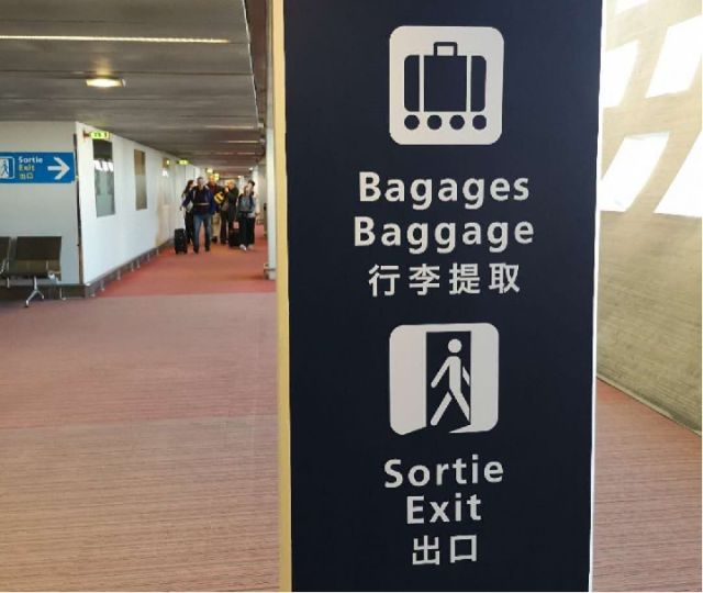 戴高樂國際機場內的中文提示語。新華社記者 孫浩 攝