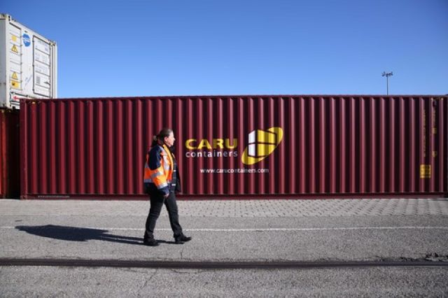 這是2019年3月5日,裝載有中國商品的集裝箱從中國武漢發出后,經由中歐班列運輸抵達法國里昂。新華社記者 唐霽 攝