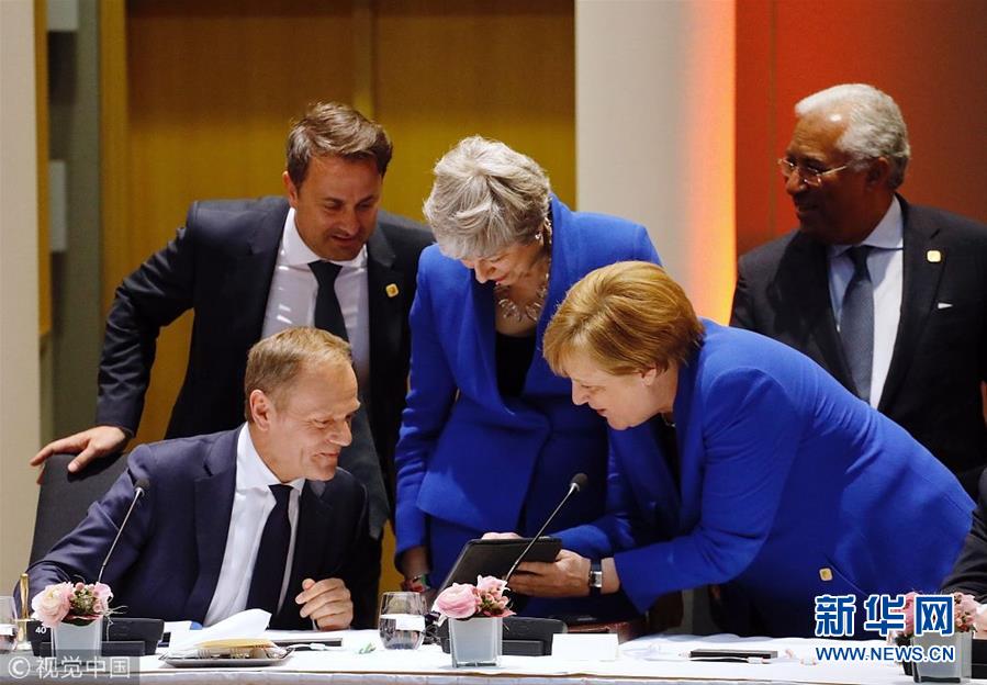 當地時間2019年4月10日,比利時布魯塞爾,歐盟領導人會議召開,討論英國“脫歐”議題。據路透社消息,歐盟各成員國達成一致,允許英國延期“脫歐”至10月底,6月份歐盟還將對此決定再次評估。歐洲理事會主席圖斯克表示,歐盟各成員國達成一致,允許英國延期“脫歐”,現在他將與英國首相特雷莎·梅舉行會談,確定英國是否接受這一提議。(圖片來源:視覺中國)