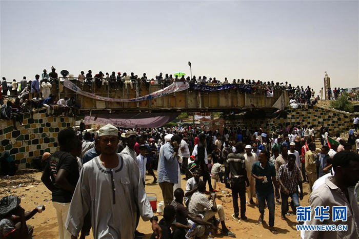 4月12日,人們在蘇丹喀土穆參加反對過渡軍事委員會的集會。新華社發(穆罕默德·海德爾 攝)
