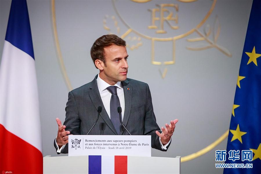 馬克龍接見參與巴黎圣母院救火任務(wù)消防員