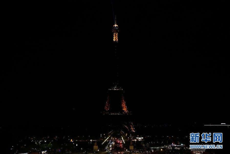 當地時間2019年4月21日,法國巴黎,法國埃菲爾鐵塔熄燈悼念斯里蘭卡爆炸遇難者。(圖片來源:視覺中國)