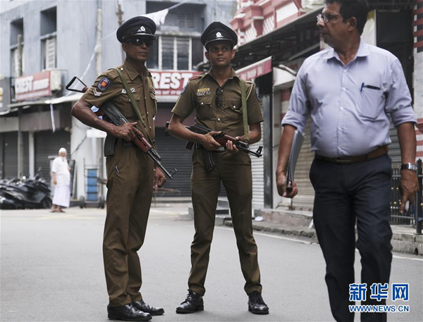 4月26日,在斯里蘭卡科倫坡,警察在城市街道上警戒。新華社發(王申攝)