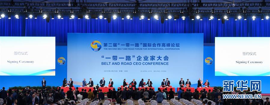 4月25日,首屆“一帶一路”企業家大會在北京舉行。這是簽約儀式現場。新華社記者 陳曄華 攝