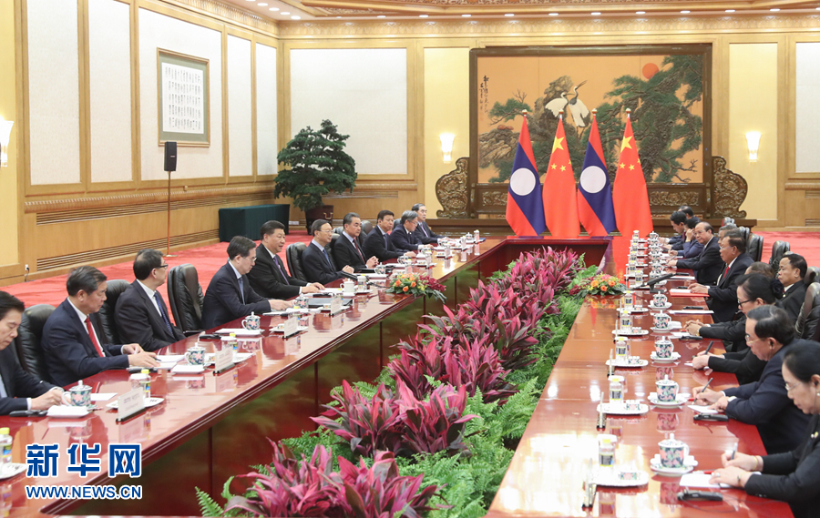4月30日,中共中央總書記、國家主席習近平在北京同老撾人民革命黨中央總書記、國家主席本揚舉行會談。 新華社記者 劉衛(wèi)兵 攝