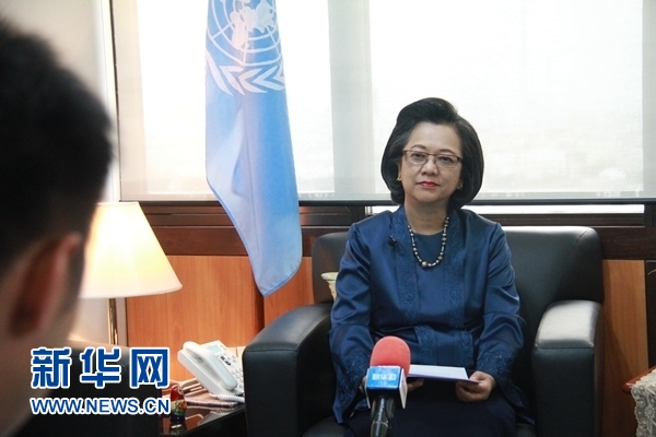 5月14日,聯合國亞洲及太平洋經濟社會委員會執行秘書阿米達·阿利斯夏巴納在泰國曼谷接受新華社記者采訪。 聯合國亞洲及太平洋經濟社會委員會執行秘書阿米達·阿利斯夏巴納日前在曼谷接受新華社記者采訪時說,70年來中國取得了全方位的發展成就,并給亞太地區帶來積極影響。 新華社發