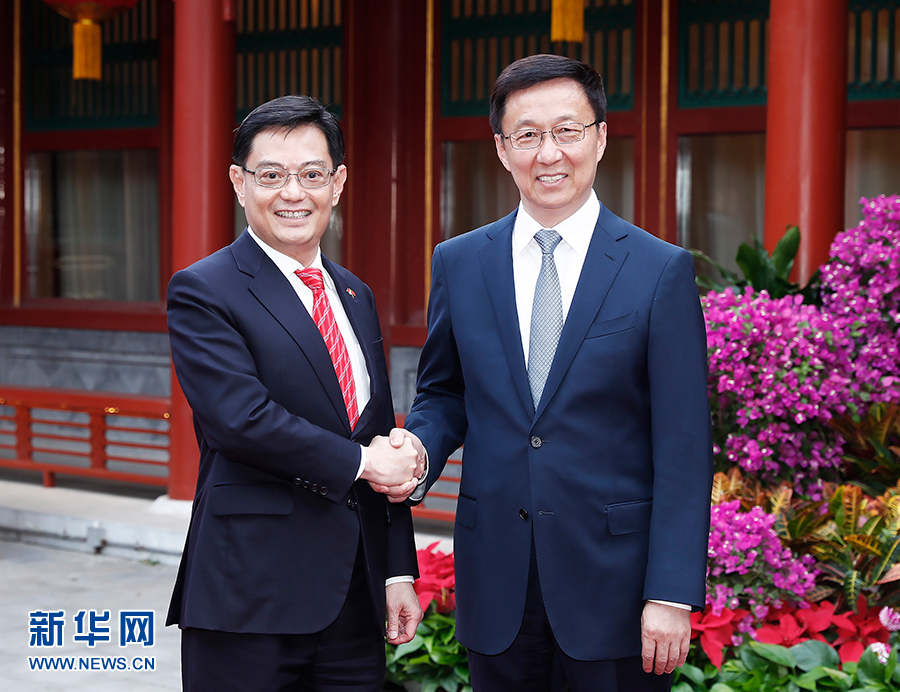 韓正表示,中方高度重視中新關(guān)系,明年兩國將迎來建交30周年,雙方要以此為契機,推動中新關(guān)系在新時期實現(xiàn)更大發(fā)展。中方愿同新方一道,落實好兩國領(lǐng)導人共識,繼續(xù)用好合作機制平臺,推動各領(lǐng)域務(wù)實合作取得更大發(fā)展。雙方要保持密切溝通,高質(zhì)量共建“一帶一路”,建設(shè)好“陸海新通道”,深化第三方市場合作,開展粵港澳大灣區(qū)建設(shè)合作,發(fā)揮示范和帶動效應(yīng),推動地區(qū)和沿線國家共同發(fā)展。
