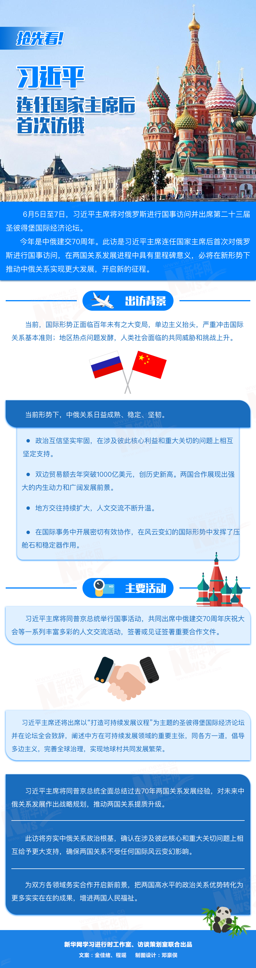 訪問期間,習(xí)近平主席還將出席圣彼得堡國際經(jīng)濟(jì)論壇,在論壇全會致辭,闡述中方在可持續(xù)發(fā)展領(lǐng)域的重要主張,同各方一道,倡導(dǎo)多邊主義,完善全球治理,實現(xiàn)地球村共同發(fā)展繁榮。
