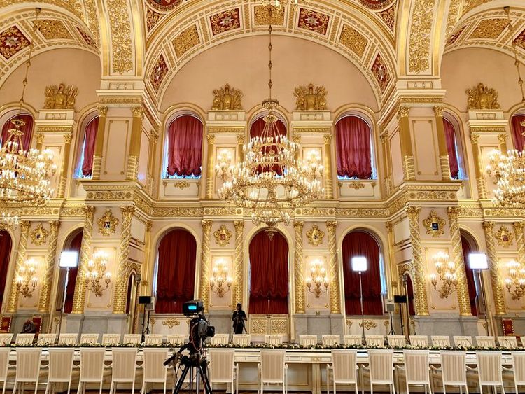 這是克里姆林宮亞歷山大廳,中俄兩國元首大范圍會談在這里舉行。新華社記者丁林攝