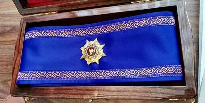 這就是授予習近平主席的勛章。“瑪納斯”勛章是吉爾吉斯斯坦國家最高獎章,由吉爾吉斯斯坦總統授予,分三個等級,一級為最高等級。新華社記者 丁林 攝