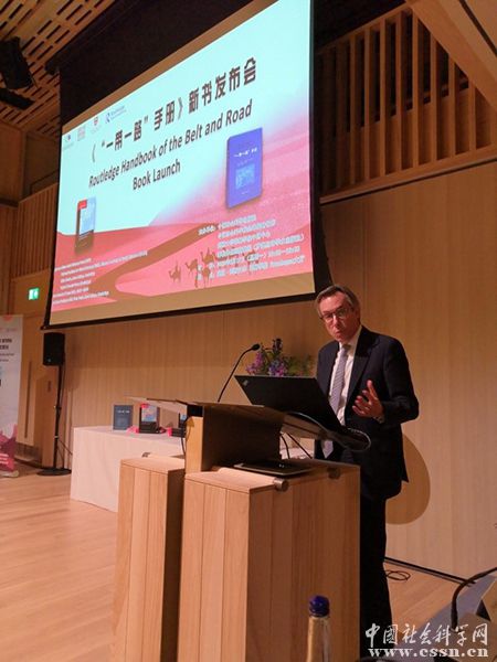 趙劍英首先對《“一帶一路”手冊》英文版的出版發行表示祝賀,作為《“一帶一路”手冊》中文版的發起者和出版方,他介紹,由中國社會科學出版社和英國羅得里奇出版社共同策劃的《“一帶一路”手冊》是全球首部以“一帶一路”倡議為主要內容的百科讀本。這部手冊在第二屆一帶一路國際合作高峰論壇現場展示中獲得熱烈反響。內容涉及“一帶一路”倡議的歷史傳承、產生與框架、“五路”、“五通”、六大經濟走廊、中國特色大國外交理念、國際上相關行動計劃等11個主要部分,涵蓋近年來與“一帶一路”有關的117個詞條。這部手冊全面、完整、系統地展現“一帶一路”倡議本身及與之有關的概念和領域,是迄今為止一帶一路理論和實踐初步成果的階段性匯總。為促進國際社會深刻理解一帶一路偉大戰略構想提供了學術引導價值。探索一帶一路的規律,建立規范型理論框架和恰逢其時,英文版的出版必然會為一帶一路匯聚廣泛的國際共識,為構建人類命運共同體添磚加瓦。據趙劍英社長介紹,社科出版社在一帶一路研究英文譯介出版發行的基礎上,未來還將增進西語、葡語、阿拉伯語、俄語等一帶一路沿線語種譯介出版,為一帶一路行穩致遠提供學理支撐。