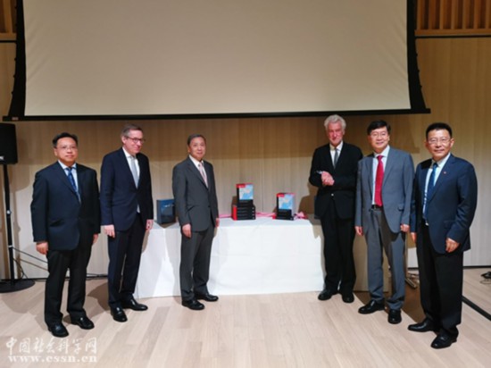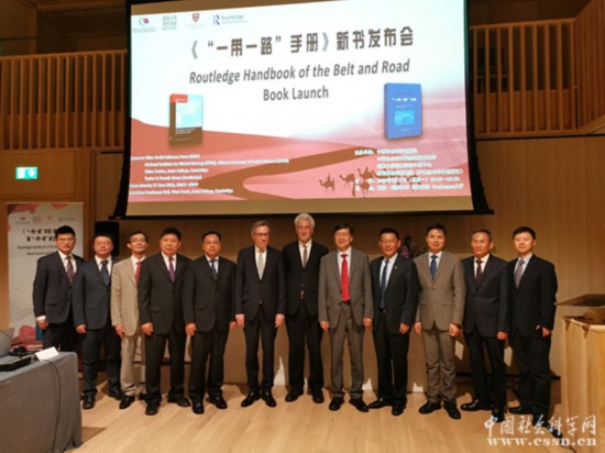會議期間, 中國社會科學院副院長、學部委員蔡昉 ,劍橋大學中國中心主任、教授彼得·諾蘭,中國社會科學出版社社長趙劍英,泰勒弗朗西斯集團全球圖書業務總裁貝謹立(Jeremy North),中國社會科學院全球戰略智庫常務副理事長王靈桂等共同為《“一帶一路”手冊》英文版一書揭幕。與會專家高度認可《“一帶一路”手冊》出版的意義和價值,贊賞“一帶一路”倡議為推動國際經濟社會發展及繁榮做出的貢獻。