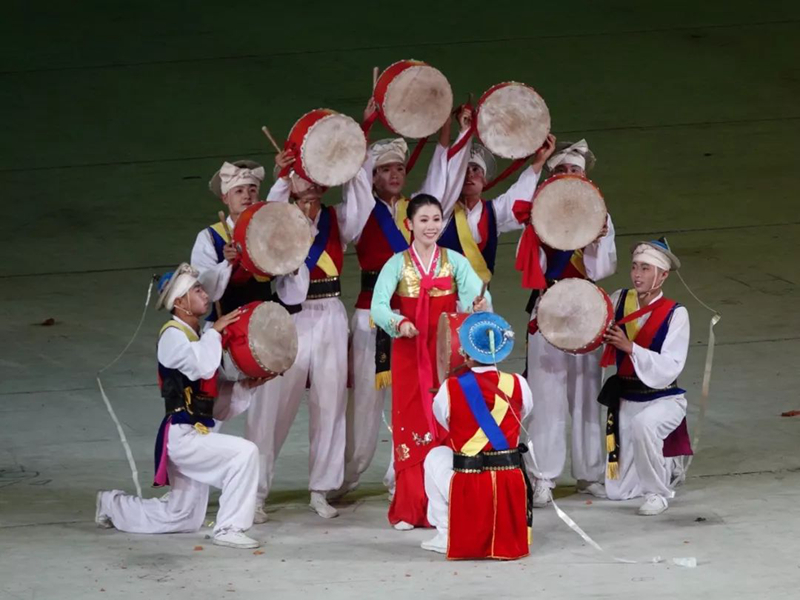 為紀念金日成誕辰90周年和金正日誕辰60周年,大型團體操和藝術表演《阿里郎》于2002年進行了首演,連續演出10年。