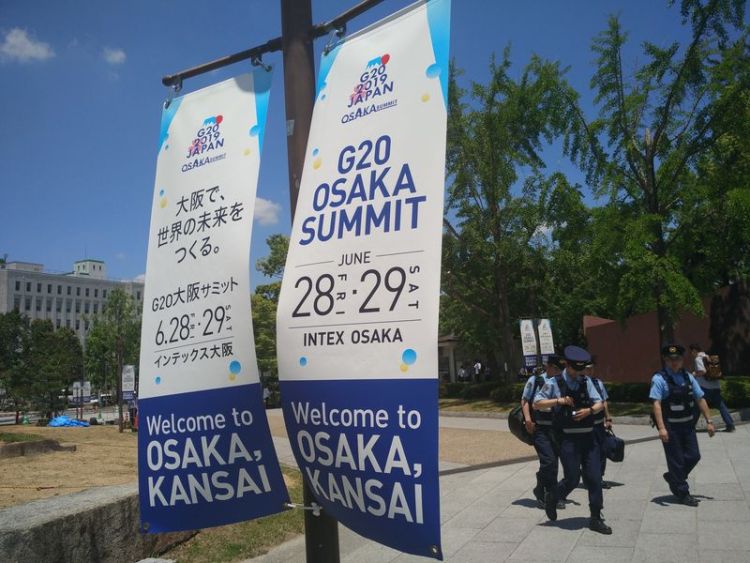 入夏的大阪,驕陽燦爛,綠意蔥蘢,海風輕拂路人。隨著峰會臨近,在大阪主要景區、酒店、商廈及干道,均可以看到帶有二十國集團領導人大阪峰會元素的標牌、海報和條幅。