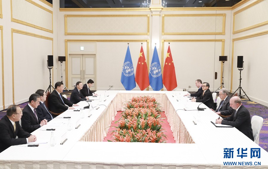 6月28日,國家主席習近平在大阪會見聯合國秘書長古特雷斯。 新華社記者 龐興雷 攝