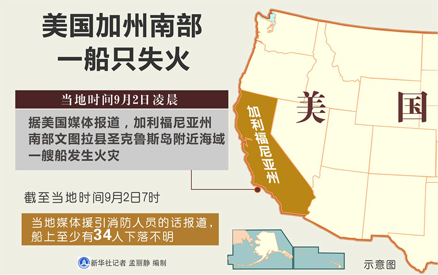 新華社洛杉磯9月2日電(記者黃恒 譚晶晶)據美國媒體報道,加利福尼亞州南部文圖拉縣圣克魯斯島附近海域一艘船當地時間2日凌晨發生火災,有人員失蹤和傷亡。