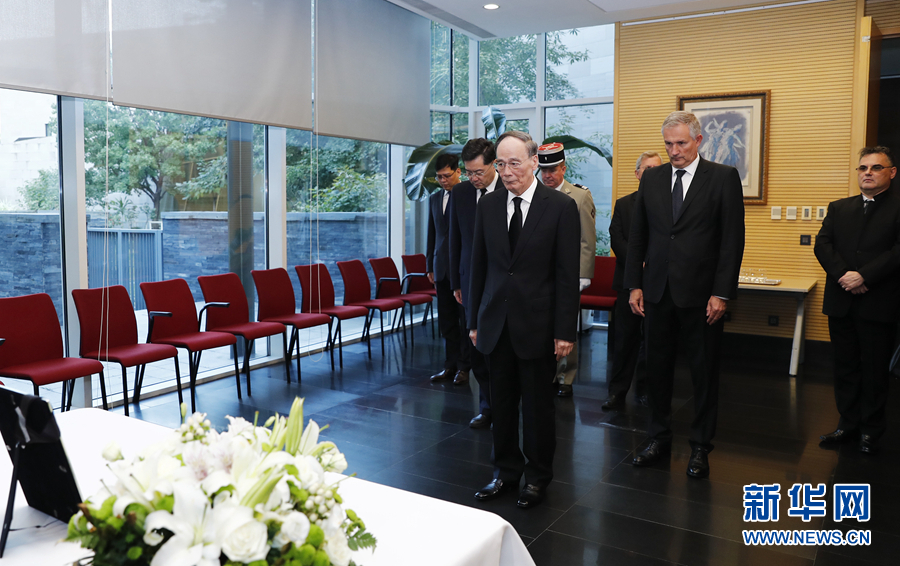 王岐山前往法國駐華使館吊唁希拉克逝世