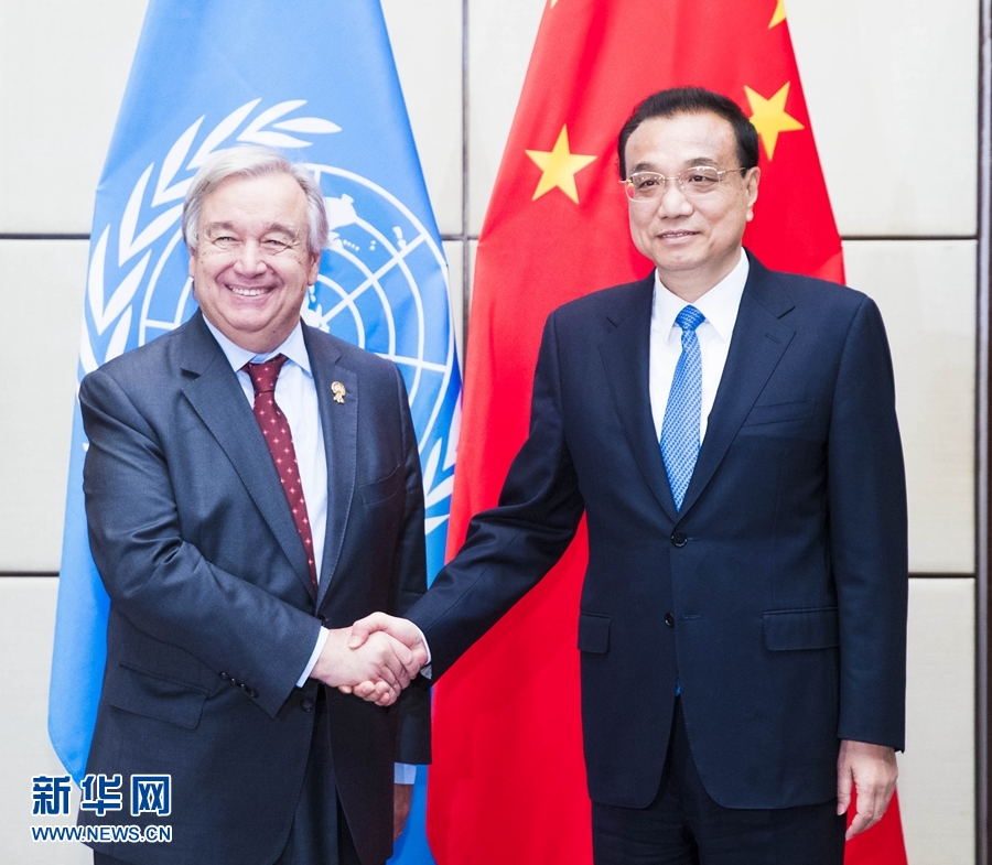 李克強(qiáng)會(huì)見(jiàn)聯(lián)合國(guó)秘書(shū)長(zhǎng)古特雷斯